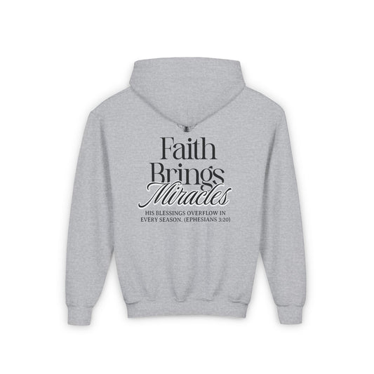 Inspirational Youth Hoodie - Faith Brings Miracles, Christian Sweatshirt, Gifts for Teens, Faith-Based Apparel, Winter Layer