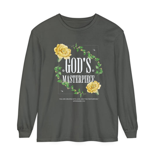 God's Masterpiece Long Sleeve Tee, Faith-Based Apparel, Gift for Women, Spiritual Wear, Spring Fashion, Inspirational Shirt