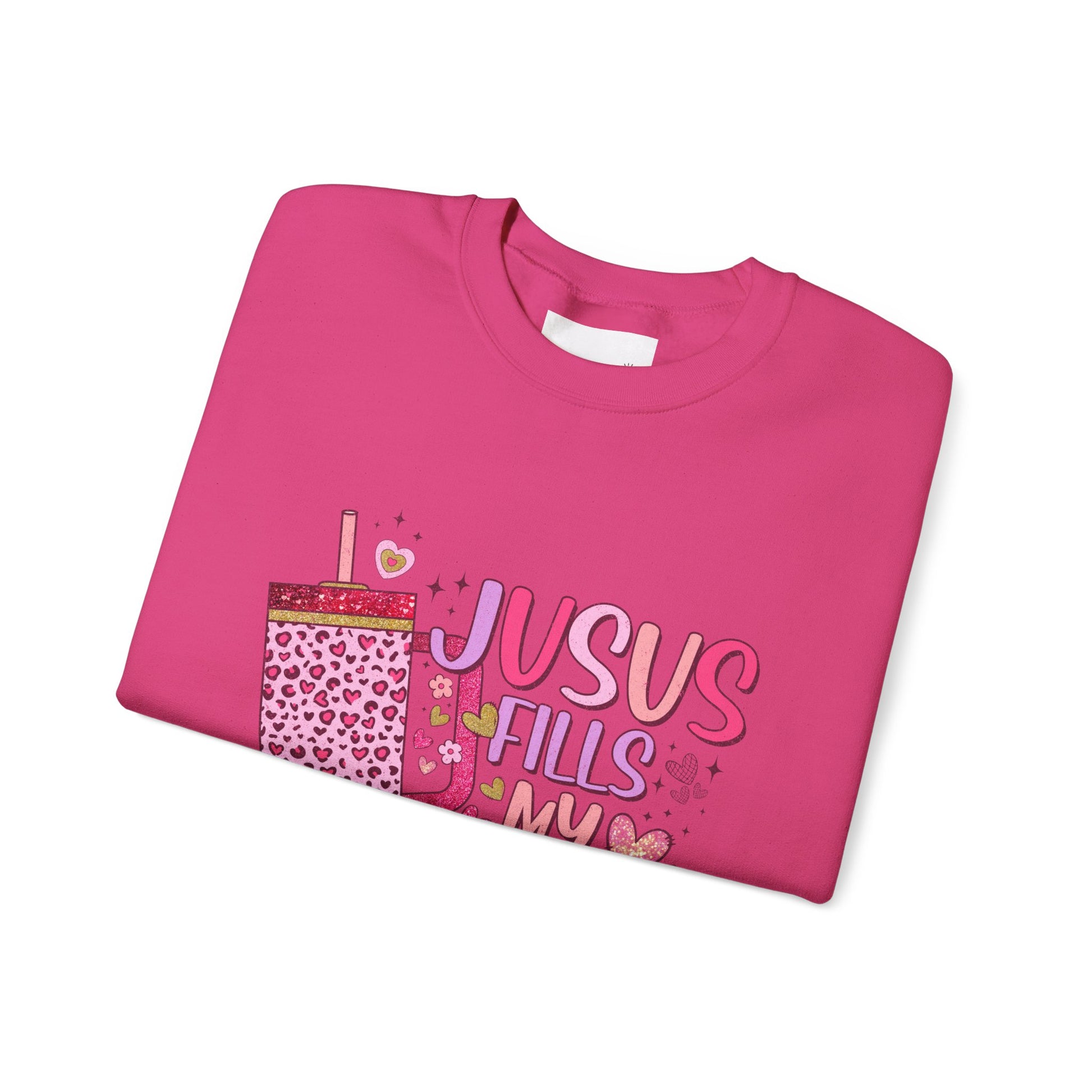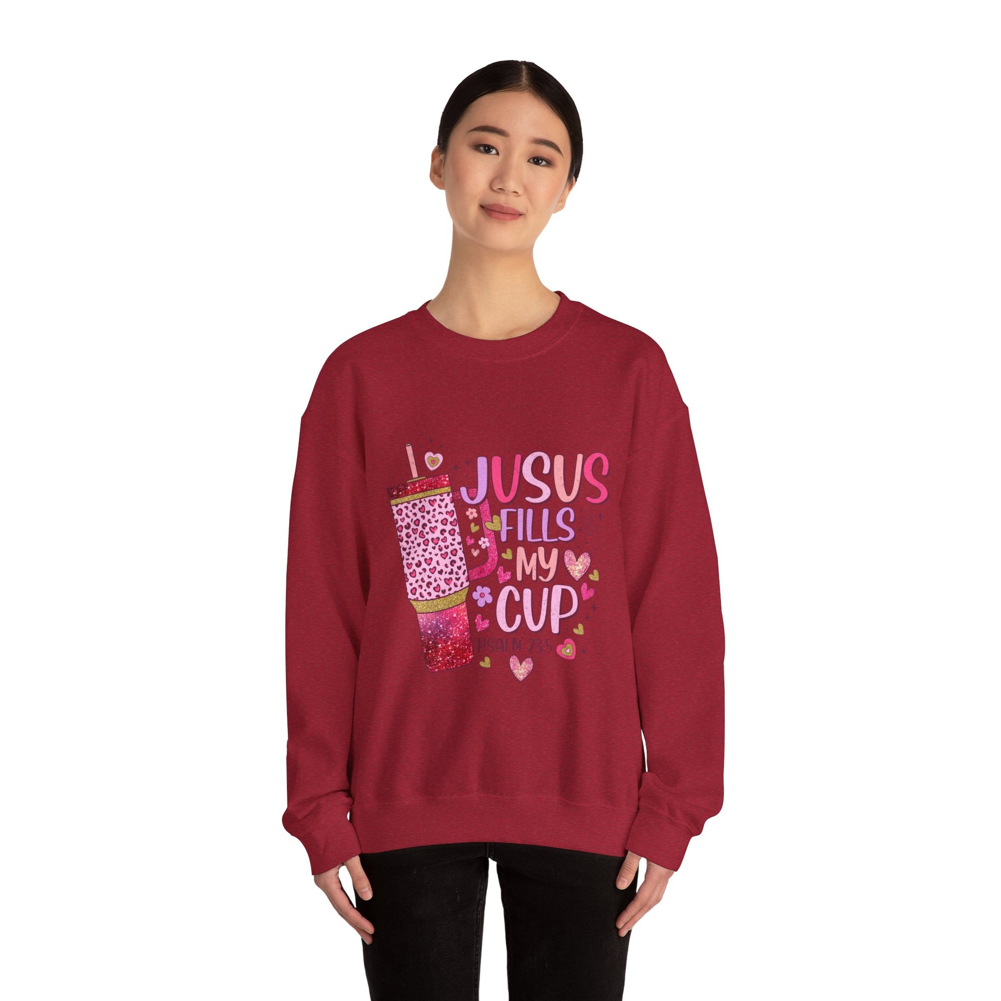 Inspirational Crewneck Sweatshirt - Jesus Fills My Cup, Cozy Faith Apparel, Christian Gift, Spiritual Sweater, Birthday Present, Church