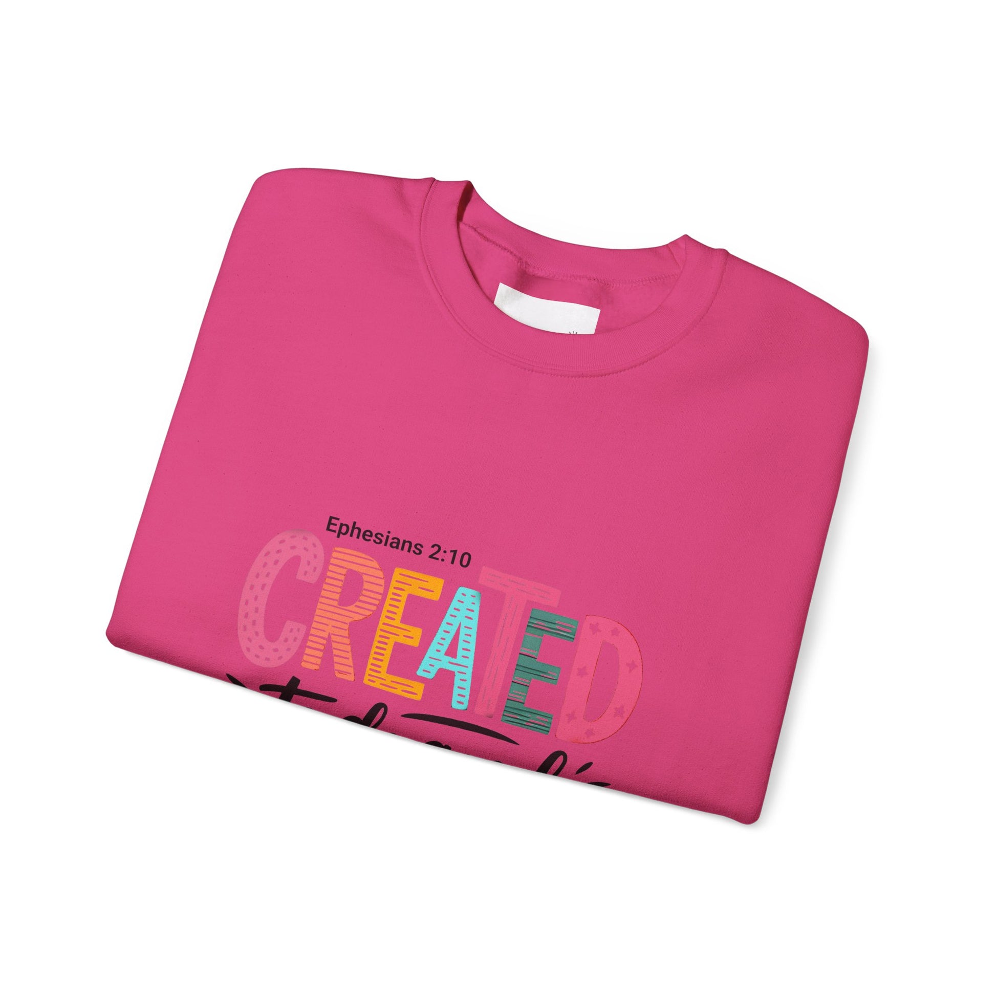 Stay cozy and stylish in this vibrant Unisex Heavy Blend™ Crewneck Sweatshirt! Featuring an uplifting message from Ephesians 2:10, this sweatshirt radiates positivity and purpose. Perfect for chilly days or cozy nights, it’s designed for both comfort and durability, making it your go-to piece for all seasons. Ideal for anyone looking to express their faith, this sweatshirt is especially meaningful for gift-giving during holidays, birthdays, or celebrations of faith. Wear it while relaxing at home, catching up with friends, or volunteering—this sweatshirt fits seamlessly into your life, promoting a feel-good vibe wherever you go.