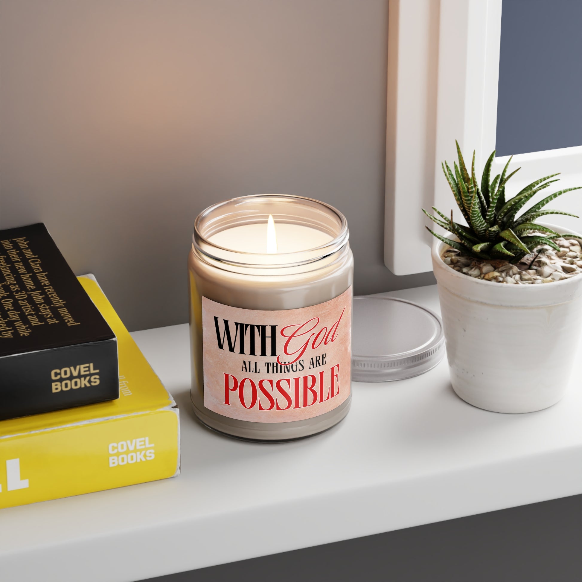 Inspirational Scented Candle - "With God All Things Are Possible" - Motivational Gift for Home Decor, Relaxation, Self-Care, Faith