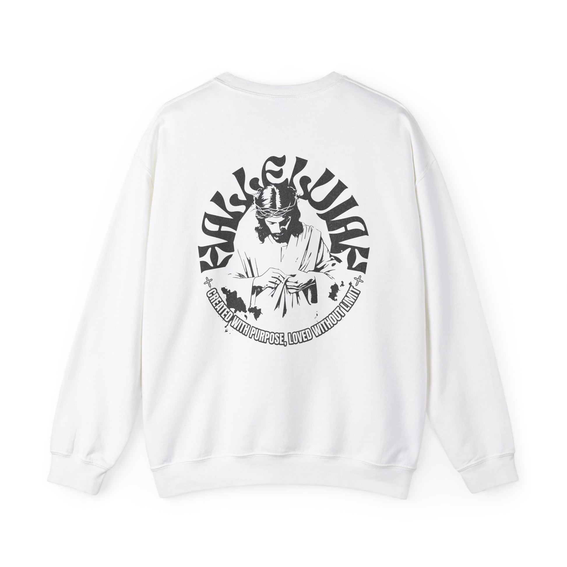 Inspirational Design: Showcases the meaningful message "Created with Purpose, Loved without Limit" to share your faith boldly.